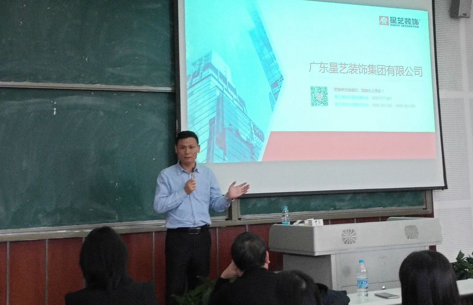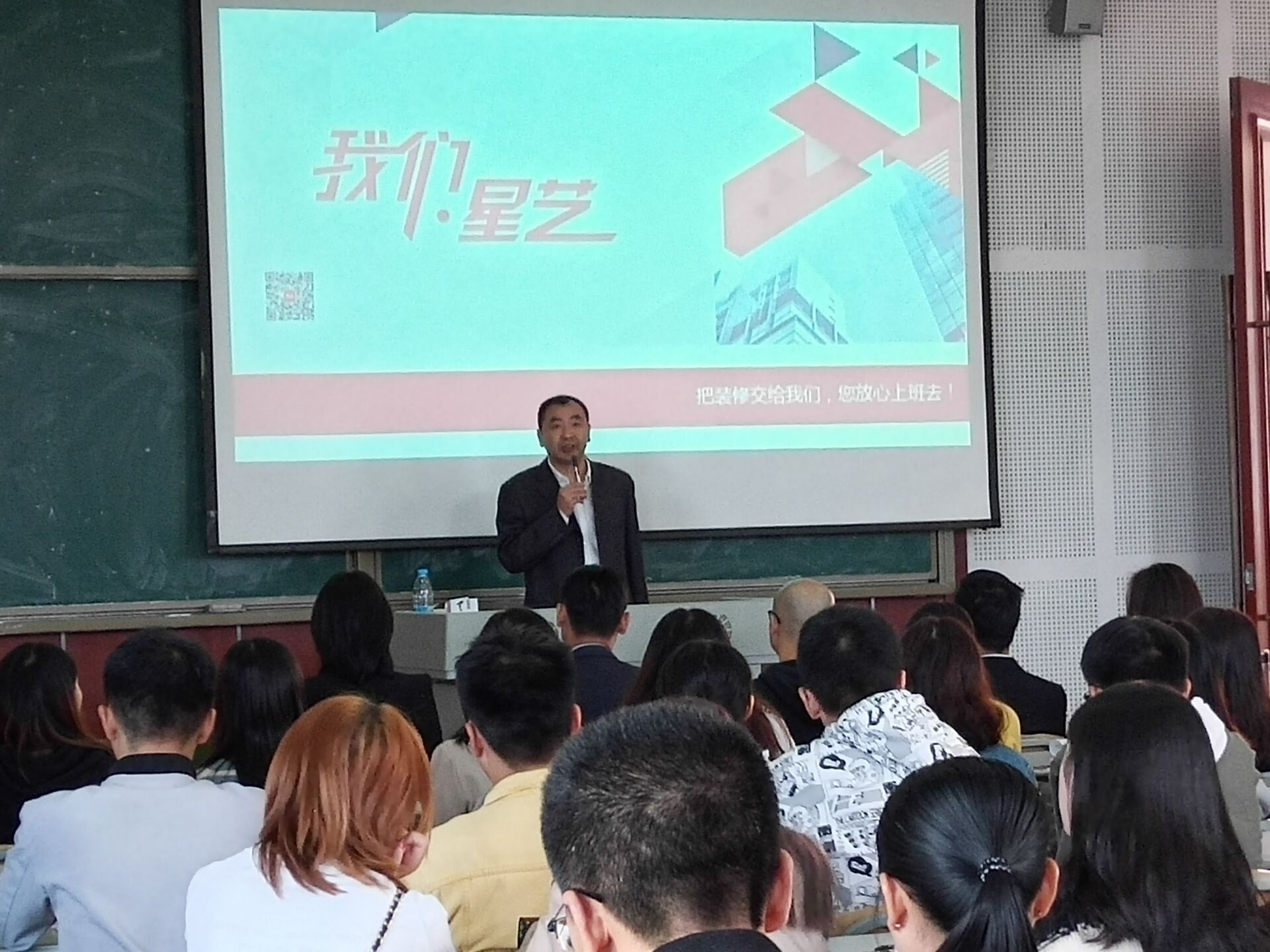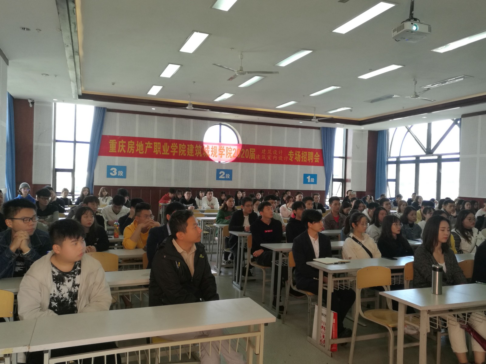 校长助理郭万斌为毕业生们做了简短的职业规划指导,希望毕业生会能够明确发展方向,脚踏实地的工作,广东星艺公司,达沃家居,红枫装饰有限公司都是行业龙头企业,各企业负责人先后到校为我院应届毕业生做专场招聘。招聘会上,招聘企业向同学们介绍公司概况、企业文化,职业发展方向以及人员需求。为同学们更明确的指出自己公司需要什么样的技术人才,并细致的分析在座的学生们更适合哪一个职位。同时,企业在员工待遇,进修培训,团队建设等方面都给出了优厚的待遇,以吸引同学们积极应聘。招聘会期间,现场气氛活跃,三家公司的招聘经理多次在会议上给应届毕业生们抛出问题,学生们也都积极的回答并提出自己的问题。