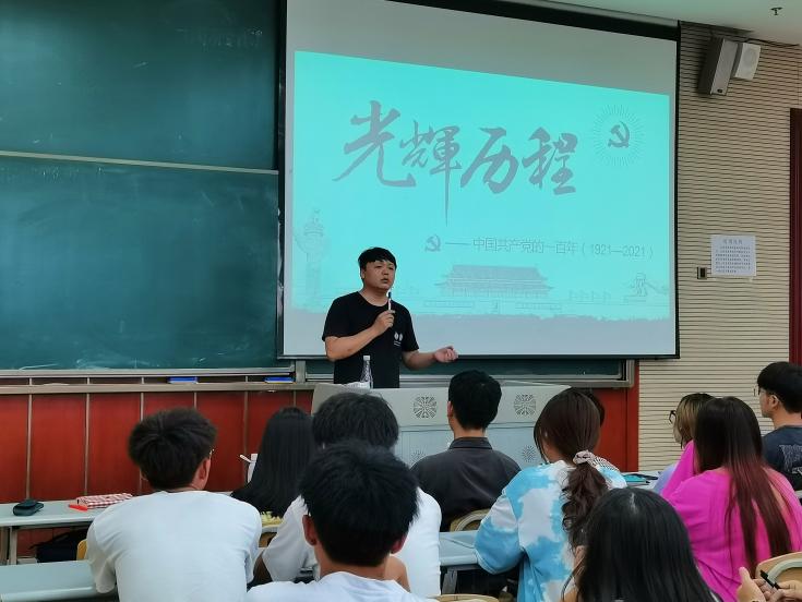 随后,刘小进老师开始了第一次培训。刘老师从五个方面叙述了中国共产党一百年的光辉历程,今年是中国共产党成立100周年,着重讲了党史的发展脉络及学习党史的重要意义,让同学们更加深刻的了解党的历史,学习党史是为了推进中华民族伟大复兴历史伟业的必然要求,也是发展中国特色社会主义的必然要求。让我们所有的入党积极分子学贵有恒,学以致用。