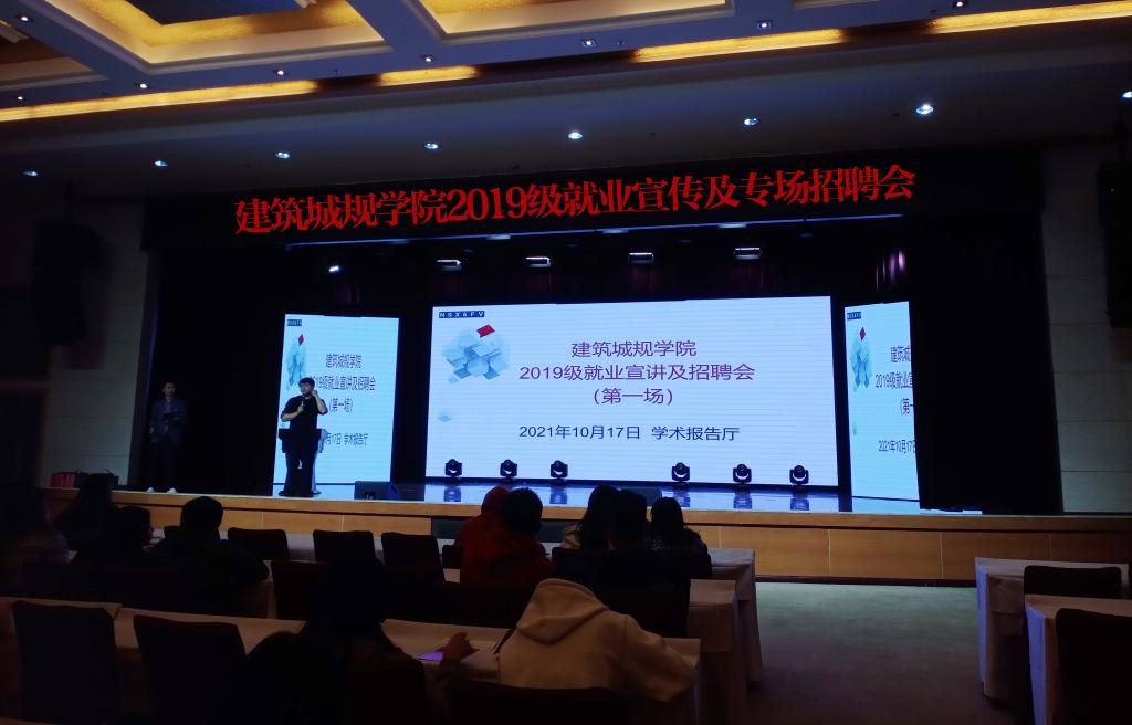 为积极推动建筑城规学院2019级毕业生就业工作,加强学院产教融合成果转化,10月17日晚,建筑城规学院2019级就业宣讲及招聘会(第一场)在学术报告厅举行。我院2019级全体同学参加此次大会,辅导员刘小进老师主持大会。