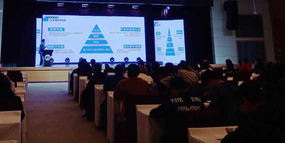 会上,学院合作单位数图工厂(重庆)大数据科技有限公司、重庆乐尚装饰工程有限公司的负责人分别进行了企业文化介绍以及公司的简介宣讲,通过播放宣传片、PPT展示、面对面交流等方式向同学们介绍公司的概况、构成、未来发展方向、人员需求以及选择该单位的理由等。随后,同学们也分别向公司负责人提出了一些关于将来工作相关的实际问题,并得到了满意的回答,也让有意向的同学有了初步签约的意向。