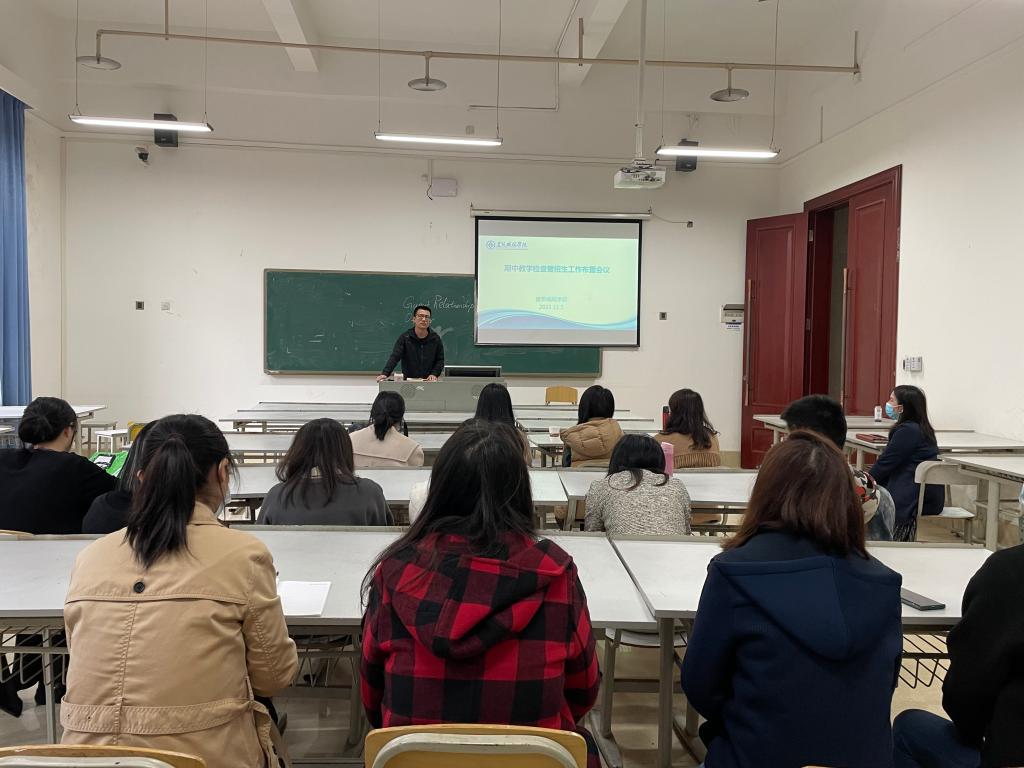 会议第一项是由崔艳清书记传达学校疫情防控工作的最新指示,着重强调学院根据学校疫情期间整体部署,对课程调整和学生管理工作的安排,要求学院教师做好自我身体健康情况检查和上下班的防护工作;提醒所有老师进出校门积极配合学校门卫检查,保障校园安全。随后对新的工作进行说明和安排,要求全院老师积极参与到招生工作中,主动认领相关地区招生任务。最后提出学院就业初步计划,并希望创业工作持续稳步推进。
