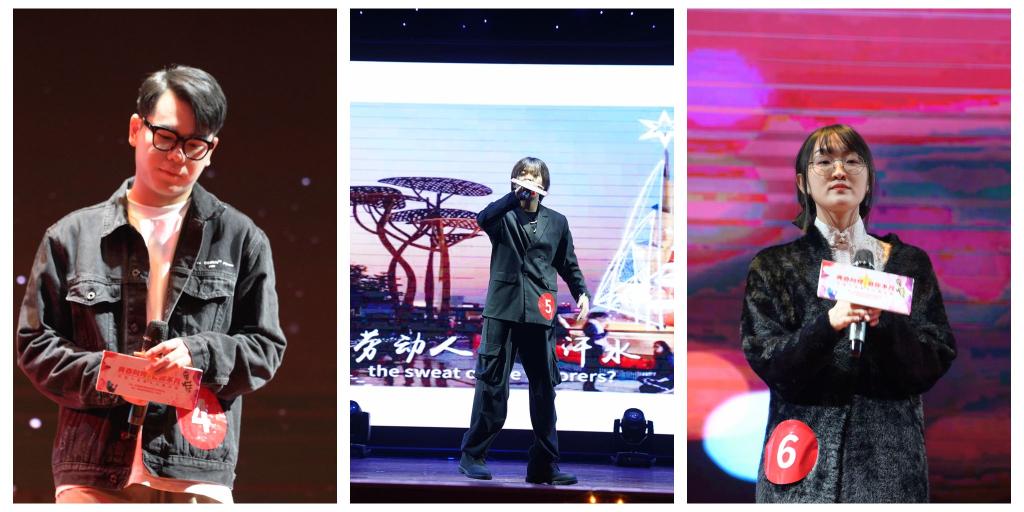 比赛继续进行,现场氛围越来越热烈。智能制造工程学院选手周喜龙,一首《父亲写的散文诗》,低回婉转,歌词朴实,将父爱如山唱得深入人心,让现场观众不禁泪目;环境艺术学院选手胡倩雯带来一首《小幸运》,让人不禁想起自己曾经错过的许许多多的美好,提醒人们要珍惜眼前的美好,努力留住那转瞬而逝的“幸运”;同样是环境艺术学院选手黎思怡,用优美的嗓音将《外面的世界》唱得人人向往;房地产营销学院选手郑玥,带来歌曲《路过人间》,将超脱尘世的洒脱表现得酣畅淋漓;数字工程学院选手赵荣鑫,带来歌曲《你是人间四月天》,让人回忆起曾经的心中的那个人现在是否依然;房地产营销学院选手李昱锦,带来歌曲《仰望星空》,他用这首歌激励了每一位观众,让他们有勇气去追逐所想要的一切;数字工程学院选手陈礼柯,以说唱歌曲《阿里郎》展现了五十六个民族的繁荣,也表达了我们要时刻牢记为我们争取现在美好生活的前辈们。