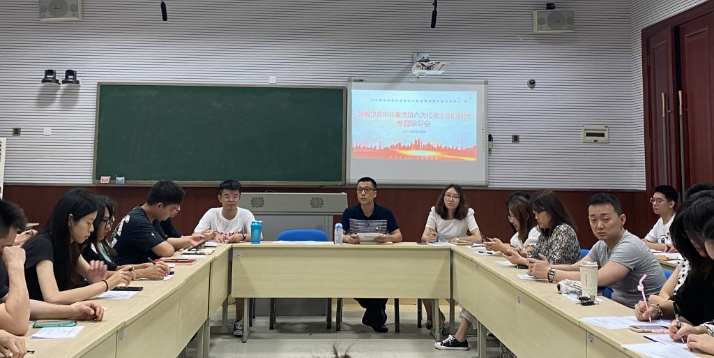 会议集体学习了陈敏尔书记作的题为《沿着习近平总书记指引的方向坚定前行 推动高质量发展 创造高品质生活 奋力书写重庆全面建设社会主义现代化新篇章》的报告。会上崔艳清书记指出,重庆市第六次党代会是在党的二十大即将召开,重庆市奋进社会主义现代化建设新征程关键时期召开的一次重要会议,具有特殊的历史方位和重要的现实意义。大会全面贯彻习近平新时代中国特色社会主义思想,系统解读了过去五年取得的成就、今后五年发展的思路目标、今后五年工作的重点举措、今后五年全面从严治党的主要任务。崔艳清指出,所有师生党员要认真研读报告原文,紧跟政府的发展步伐,找准工作的切入点、着力点和突破点,切实强化责任担当,及时把大会精神转化为工作思路,细化为实际举措,落实为具体行动。
