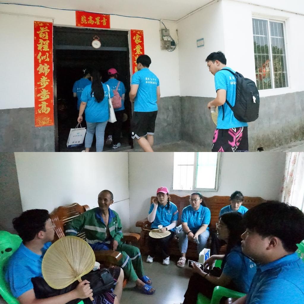 紧接着,实践队来到另一位低保户,是村里的青年小伙,小时候发高烧引起大脑损伤,留下后遗症。见到同学们的到来不敢见人,于是实践队对其父亲文大叔进行了慰问。通过交谈,了解到这个家庭的难处,孩子正值壮年生活却不能自理,孩子母亲早年不幸患癌离世,全靠文大叔一个人干活支撑起这一个家,辛亏这些年有国家政府的帮助感减轻了不少的负担。