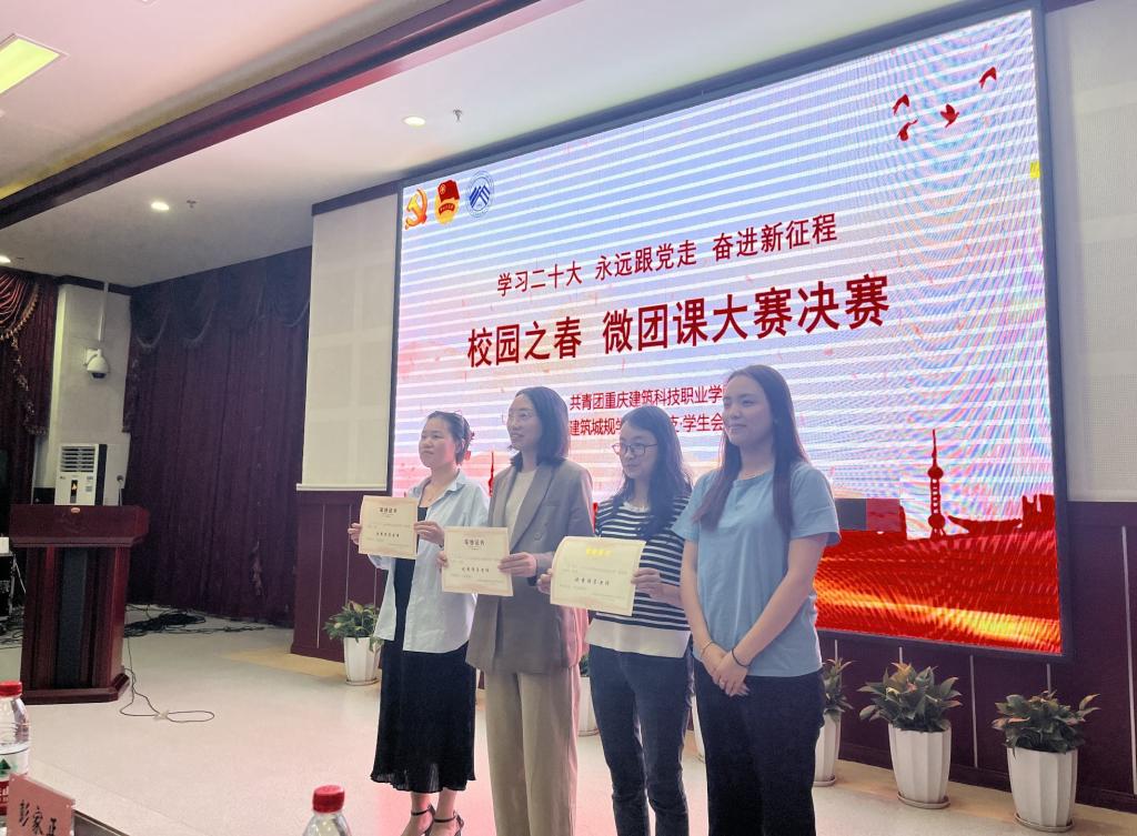 经过激烈的角逐,现场评委公平公正的进行评分,最终评选出一等奖一名,二等奖两名,三等奖四名。建筑工程学院《热血青春 让青春为祖国绽放》微团课斩获一等奖;建筑城规学院《以青春之声 展青年担当》微团课和智能制造工程学院《踔厉奋达跟党走 勇毅前行向未来》微团课荣获二等奖;房地产营销学院《多难兴邦精诚志 同心同德显担当》微团课、数字工程学院《学习二十大精神 品味英楷故事情》微团课、建筑管理学院《以青春之我 筑青春之国》微团课、环境艺术学院《永不凋零的巾帼玫瑰》微团课获得三等奖。