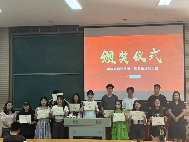 为贯彻落实习近平总书记对技能人才工作的系列重要指示,打通高技能人才与专业技术人才职业发展通道,深化青年学生创新创业教育改革,完善人才培养机制。进一步激发青年学生学习技能、掌握技能、提升技能的积极性,加强青年学生专业知识及实践技能的锻炼,满足社会对技能人才的多元化需求。我院于2023年9月6日在笃学楼1205顺利举行了建筑城规学院第一届劳动技能大赛的颁奖仪式。