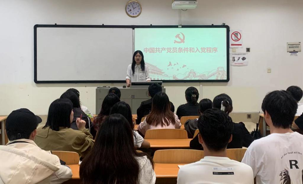 王杰老师以中国共产党党员的条件和入党程序为主题,详细介绍了中国共产党党员条件和入党程序。让同学们知道了如何才能成为一名中共党员,端正了入党申请人的入党动机。同时王杰老师对发展党员的流程进行了详细的讲解,从申请入党、入党积极分子的确定和培养教育、发展对象的确定和考察、预备党员的接收、预备党员的教育考察和转正五个阶段对发展流程进行详细地讲解,并结合实际情况对需要注意的问题进行了讲解说明。