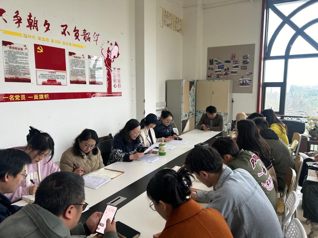 会上,王源同志首先带领全体同学同志再次深入学习了《<习近平谈治国理政>第四卷(第8专题)》、《习近平在二〇二四年春节团拜会上的讲话》,将理论与实践相结合,不断提升个人综合素养;随后,学工办主任李清玲同志带领大家集中学习了重庆市重要会议及文件精神——《点上巩固基础 面上拓展成势,加快打造数字重庆实用实战标志性成果》、《唱好“双城记”打造增长极 推动双城经济圈建设取得重大标志性成果》,号召全体师生党员从自身实际出发,积极投入推动发展的实践中。