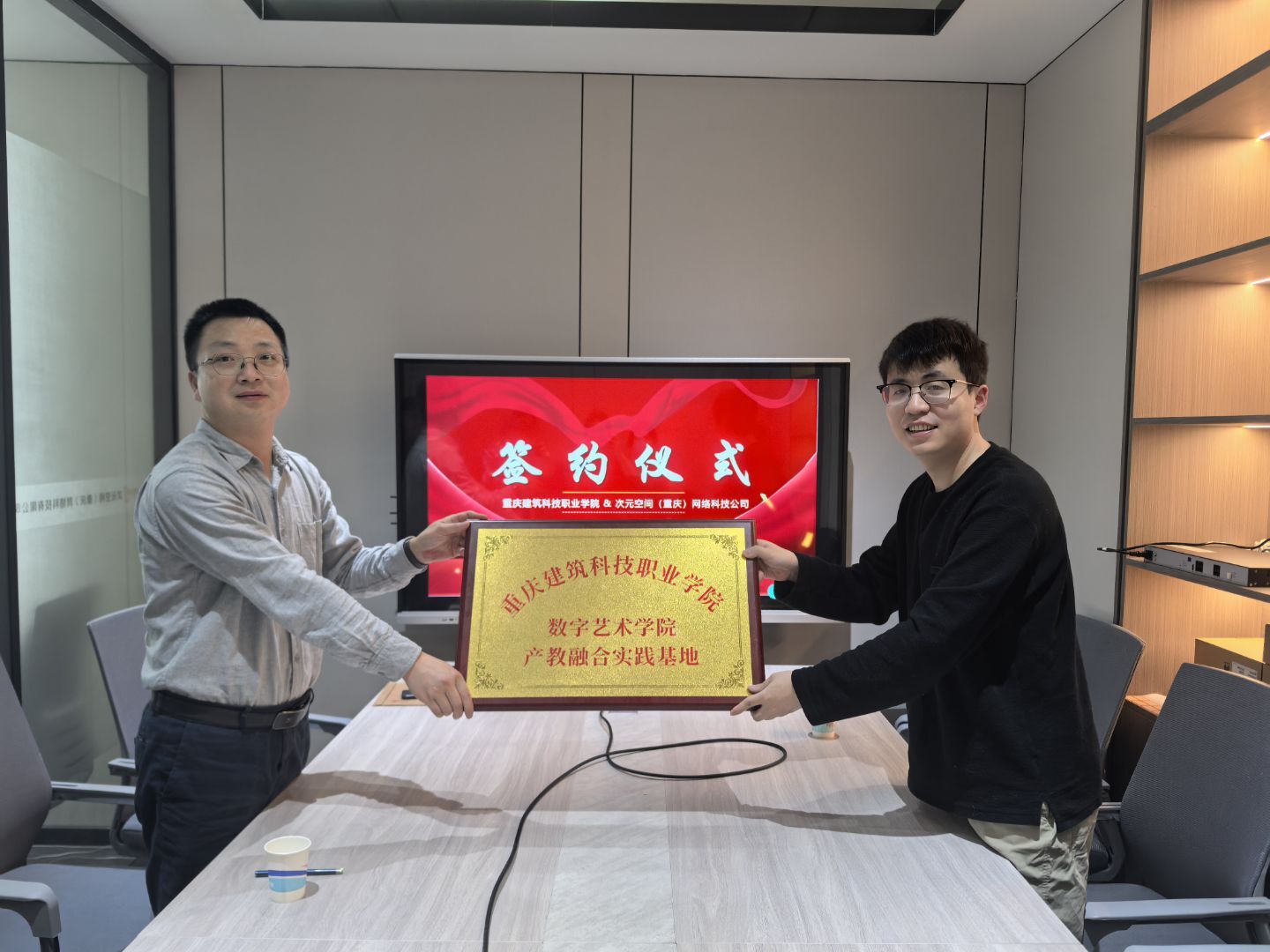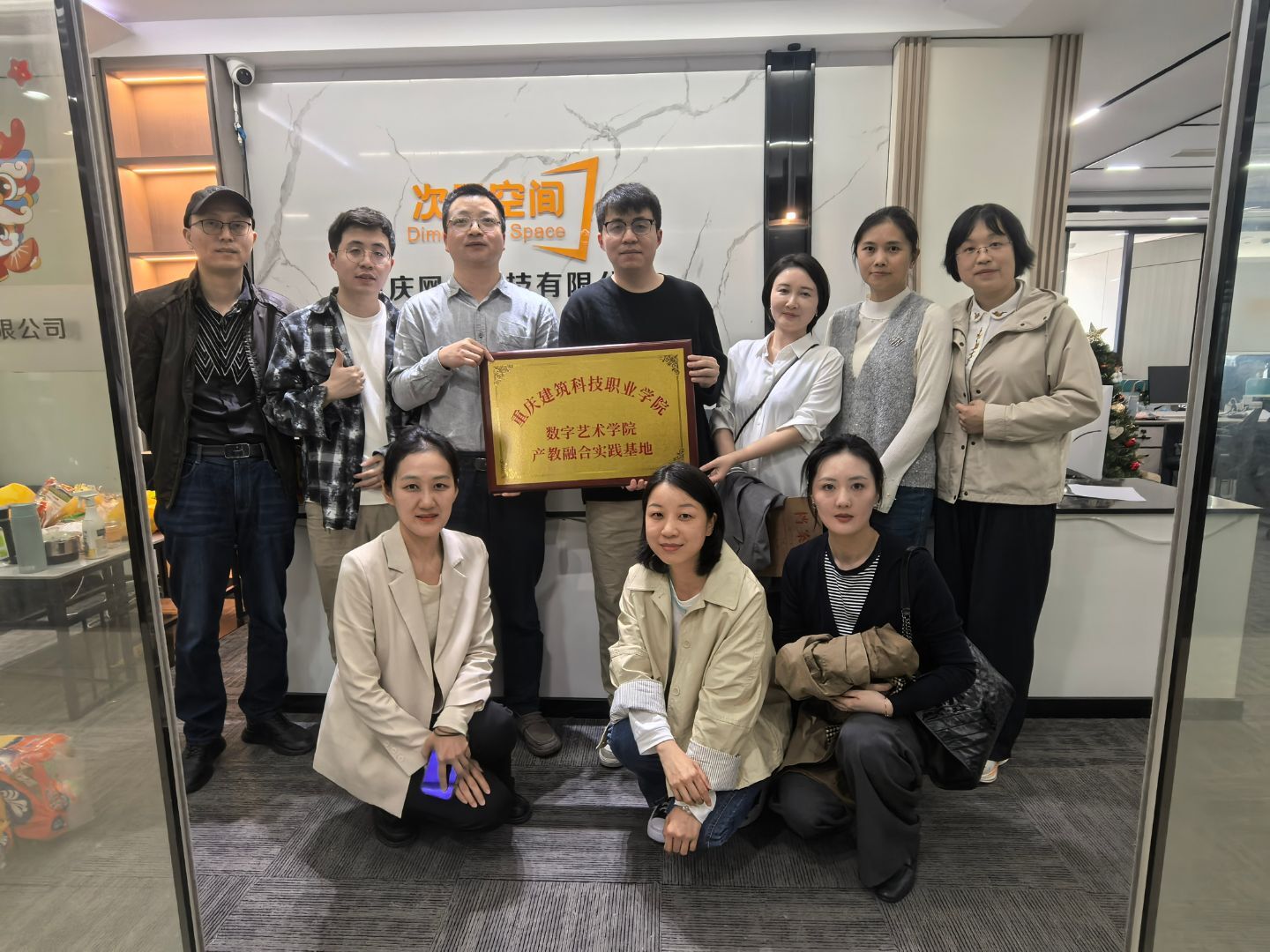 为进一步深化产教融合,推动专业数字化转型升级,4月9日,建筑科技职业学院数字艺术学院院长曾易成率建筑室内教研室教师团队再访次元空间(重庆)网络科技有限公司(以下简称“次元空间”),双方正式签订校企合作协议,并挂牌成立“产教融合实践基地”。次元空间联合创始人文怀伟、文怀俊及技术团队出席签约仪式,双方就AI技术赋能建筑室内设计、实训资源共享、人才联合培养等议题达成深度合作共识。