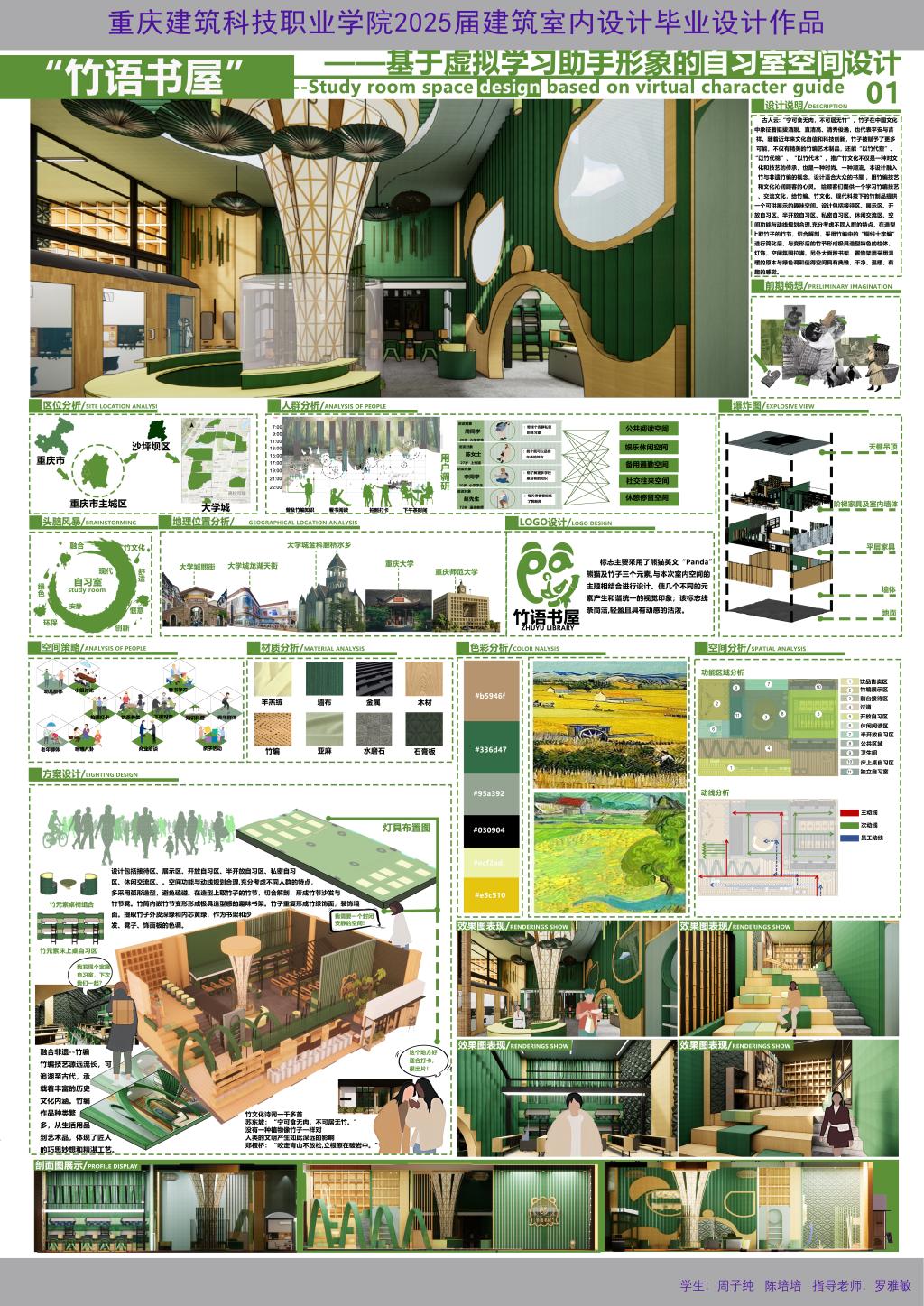 建筑室内设计专业毕业设计:《竹语书屋》——基于虚拟学习助手形象的自习室空间设计