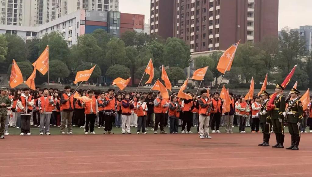 首先升旗仪式开始前由各学院接力喊出学院口号,到数字艺术学院接力口号时,负责拿班旗的学生用力扬起手中的班旗,在那一声声口号里,每一个字都好似被赋予了力量,从学生们的口中清晰有力地喊出,声声入耳,字正腔圆,展现了学院的凝聚力。然后国旗队的队员们身姿挺拔地伫立在升旗台前,他们身着整齐的制服,神情庄重而肃穆。升旗手用力扬起国旗,全体师生面朝国旗,歌唱国歌。