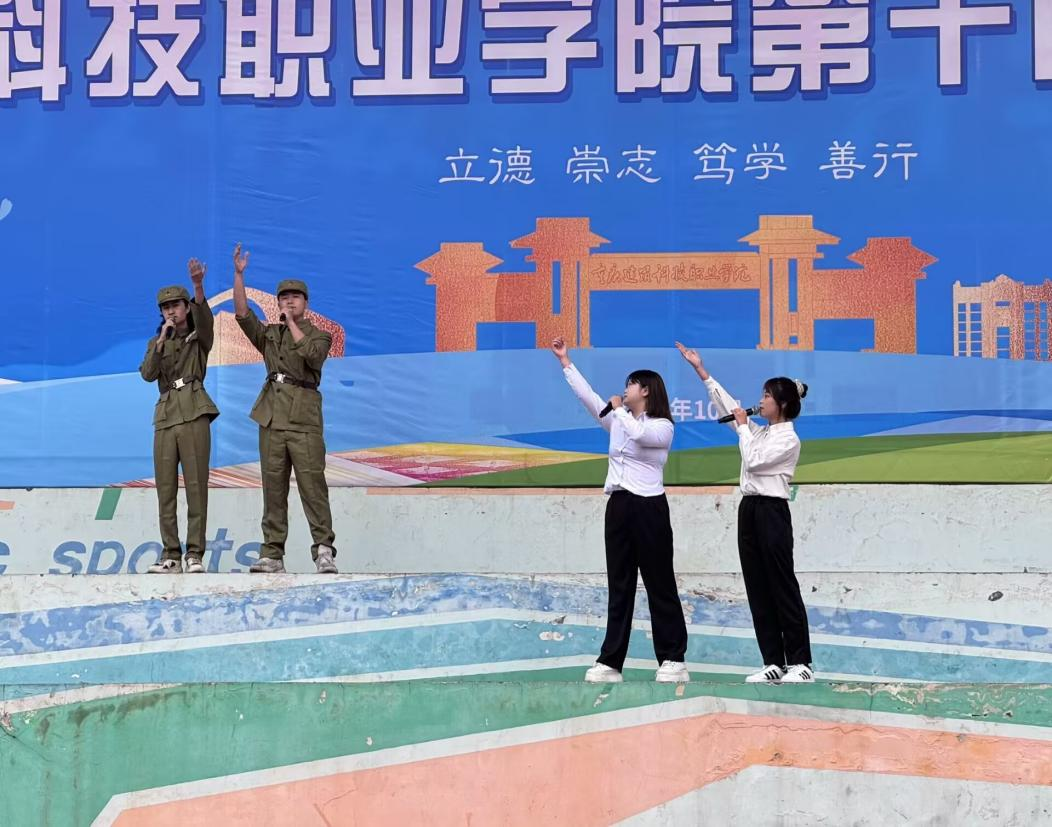 最后是由数字艺术学院4名同学陶玉兰张颖邓自强袁意带来的《抗美援朝》主题朗诵表演他们饱含深情地演绎,生动呈现了抗美援朝战场上志愿军战士们的英勇无畏。他们用激昂的语调、真挚的情感、利落的动作描绘出志愿军面对强敌毫不退缩,在冰天雪地、枪林弹雨中浴血奋战的场景。
