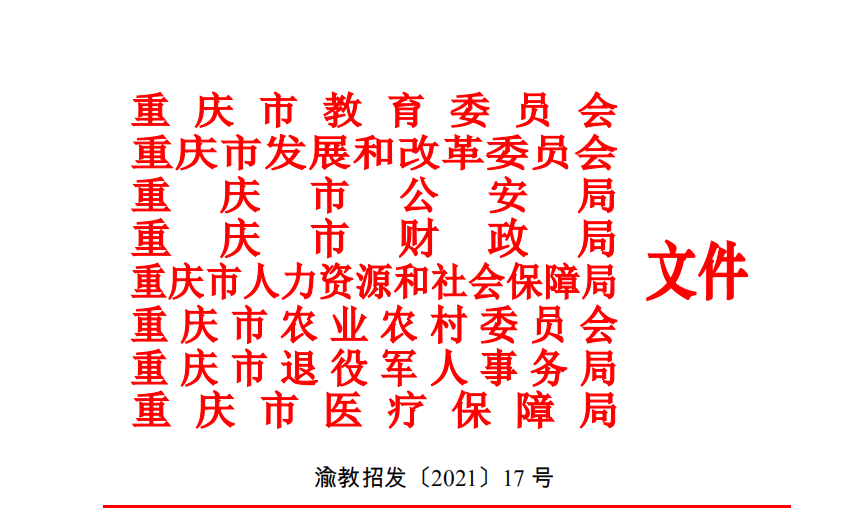 各区县(自治县)教委(教育局、公共服务局)、发展改革委、公安(分)局、财政局、人力社保局、农业农村委、退役军人事务局、医保局,有关本科高校,各高职院校,市教育考试院: