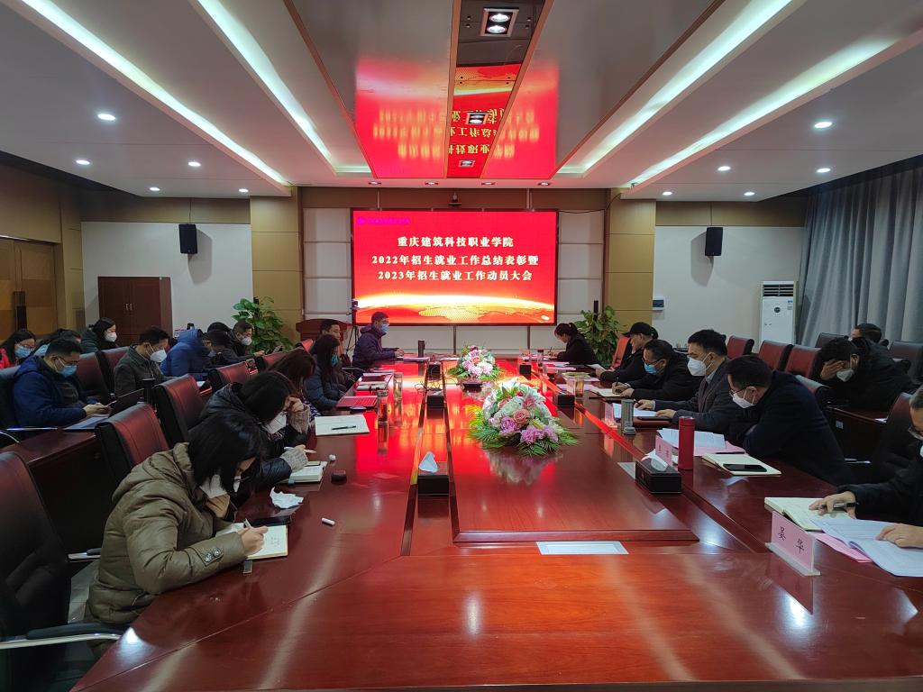 会上,招生就业处马涛处长就2022年招生就业工作进行了总结汇报,同时宣布了2023年校属各二级学院招生目标。2022年招生工作取得历史性突破,生源地重庆市的招生计划(初始)为2915名,实际录取3562人,报到3158人,任务完成率为108.00%,报到率为88.66%。大会表彰了2022年招生工作先进集体(房地产营销学院、智能制造工程学院、建筑工程学院、建筑城规学院、建筑管理学院)、就业工作先进集体(环境艺术学院、数字工程学院)、招生工作先进个人(郭静秋等16人)、就业工作先进个人(黄川等8人);获奖二级学院代表(智能制造工程学院、环境艺术学院)进行了发言,结合自身工作经验开展交流。