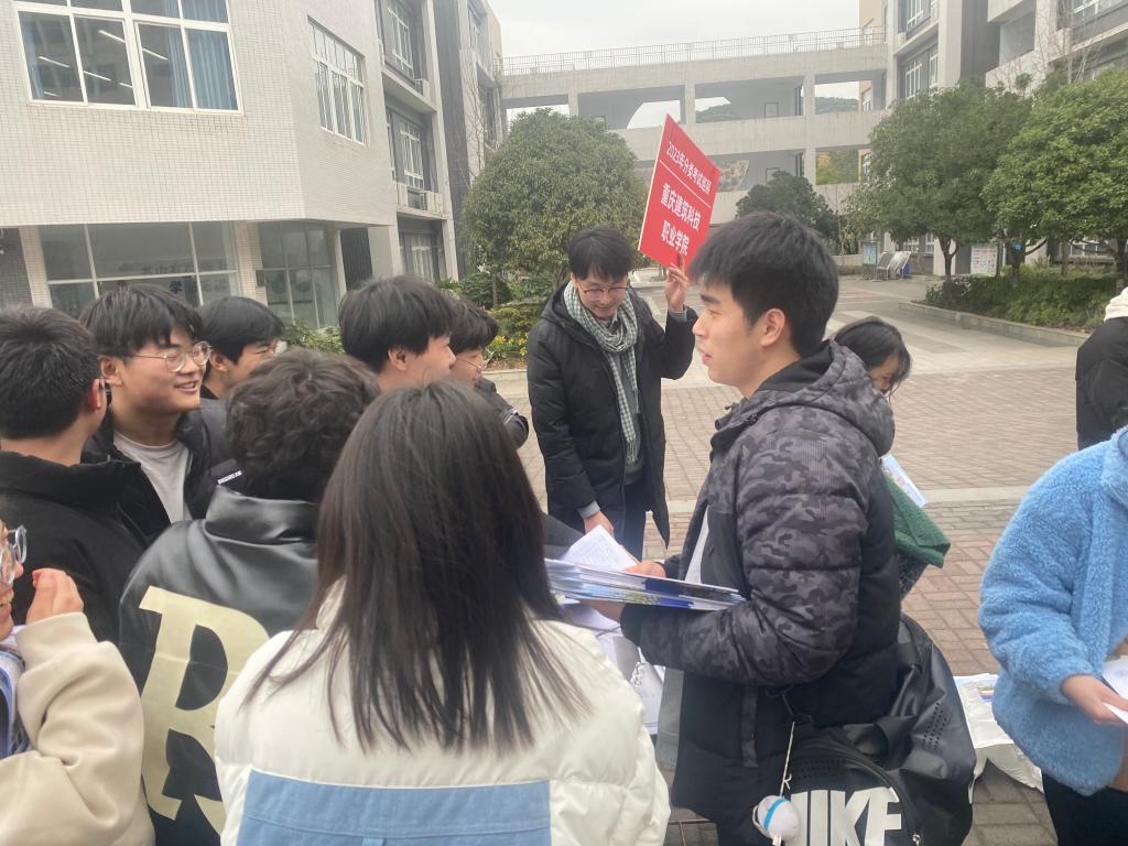 2月14日Kaiyun官方网站登录入口招生就业处任峰、郎中楼、冯康浩3位老师和Kaiyun官方网站登录入口建筑城规学院曹艺凡老师一道,会同赵绪康等4位学生助理,参加了重庆市高等教育学会主办、重庆昭信传媒承办的2023年分类考试巡展活动,有力地推进Kaiyun官方网站登录入口招生宣传。