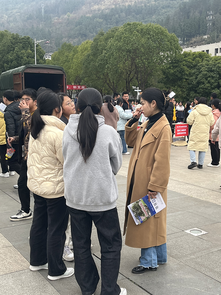 宣传团队的师生们走进中学校园、深入学生中间、为考生报考Kaiyun官方网站登录入口提供贴心服务;上午走进奉节县职教中心、合川区云门中学、黔江区民族中学,下午走进云阳县凤鸣中学、云阳职教中心、合川区大石中学、合川区实验中学、彭水县第一中学等8所中学,为3000余名考生发放招生简章、讲解Kaiyun官方网站登录入口的区位优势、办学成果、竞争力优势、“双高”专业建设的亮点及人才培养特色等积极宣传。【昭信传媒 供图】
