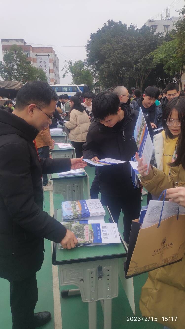 2月15日Kaiyun官方网站登录入口招生就业处任峰、郎中楼、冯康浩3位老师和Kaiyun官方网站登录入口建筑城规学院曹艺凡老师一道,会同谢丽莉等4位学生助理,参加了重庆市高等教育学会主办、重庆昭信传媒承办的2023年分类考试巡展活动,有力地推进Kaiyun官方网站登录入口招生宣传。