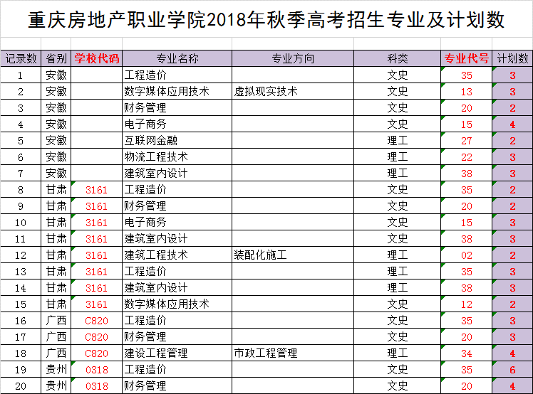 Kaiyun官方网站登录入口2018年重庆招生专业代号及计划数