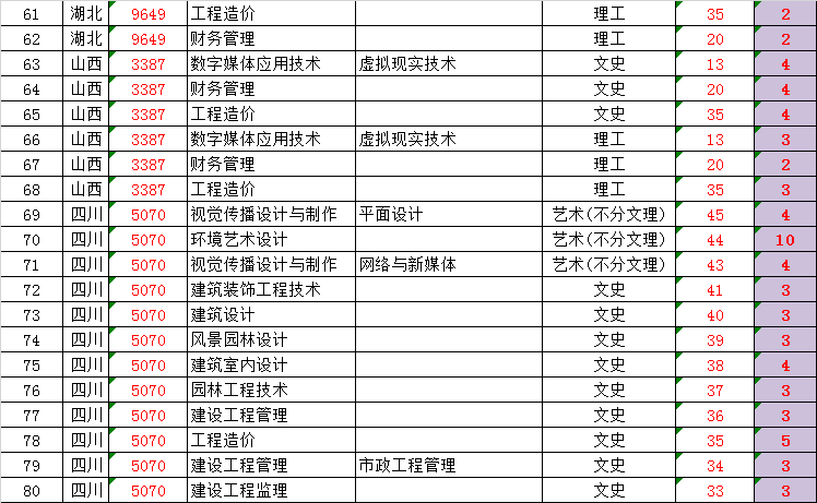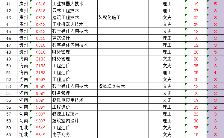 秋季高考招生专业及计划数