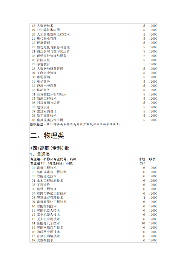 生源地广东2025年高考填志愿代号及计划数
