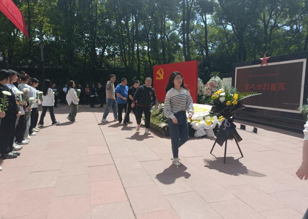 最后,房地产营销学院党支部组织委员周庆莲老师带领现场全体党员同志,重温入党誓词,用铮铮誓言彰显中国共产党人的初心使命。鲜花寄哀思,初心传后人。全体人员列队整齐、低头默哀,依次向革命烈士敬献鲜花绕烈士墓一周表达敬意和哀思。
