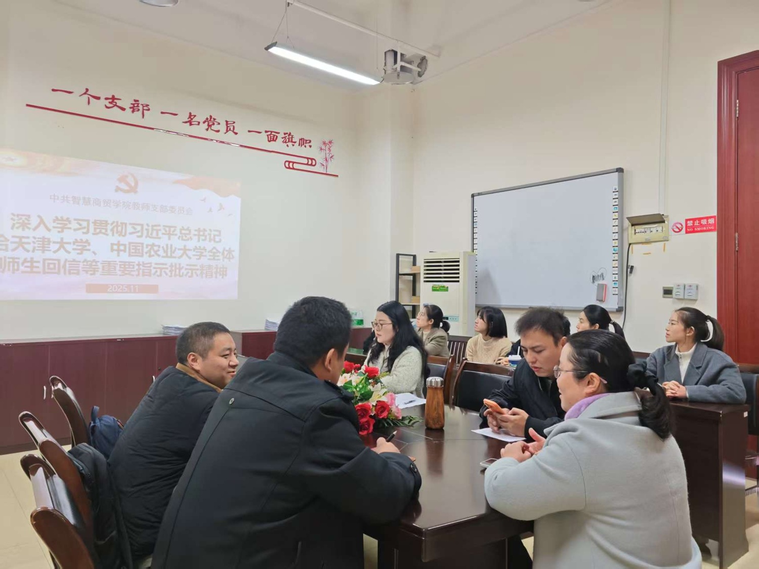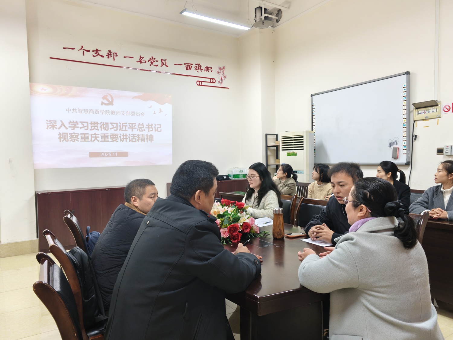 为深入学习贯彻党的二十届四中全会精神及习近平总书记重要讲话精神,2025年1126日,智慧商贸学院召开全体党员大会,专题学习二十届四中全会精神、习近平总书记给天津大学和中国农业大学师生回信精神、视察重庆重要讲话精神及重庆市委六届七次全会精神。学院党总支书记主持会议,全体党员教师参加学习。