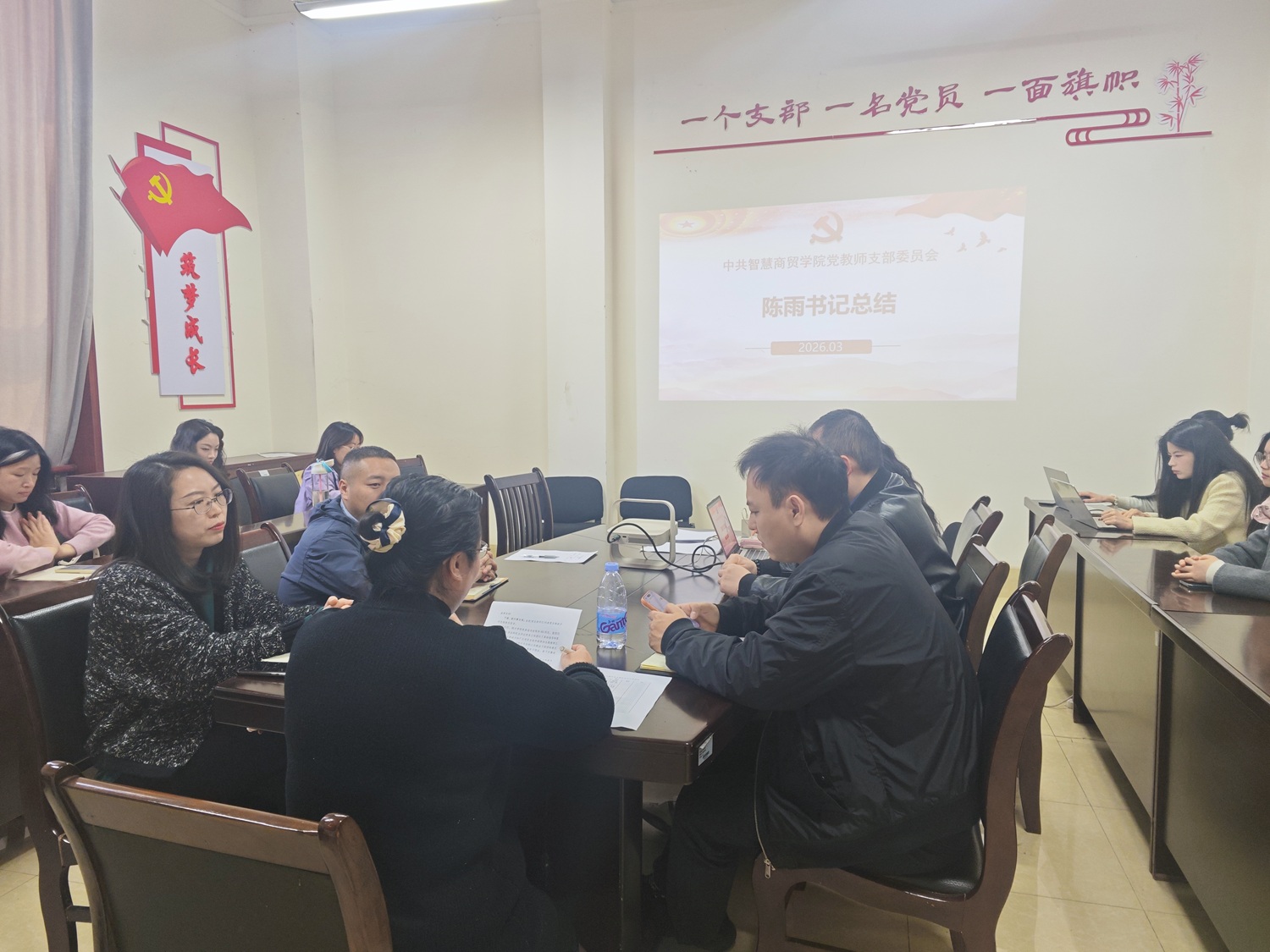 为深入学习贯彻习近平新时代中国特色社会主义思想,严格落实党的组织生活制度,3月11日下午,智慧商贸学院教师党支部在学院会议室召开2025年度组织生活会及民主评议党员大会。学院教师党支部书记陈雨主持会议,全体教师党员参加,校长助理周旖列席指导。