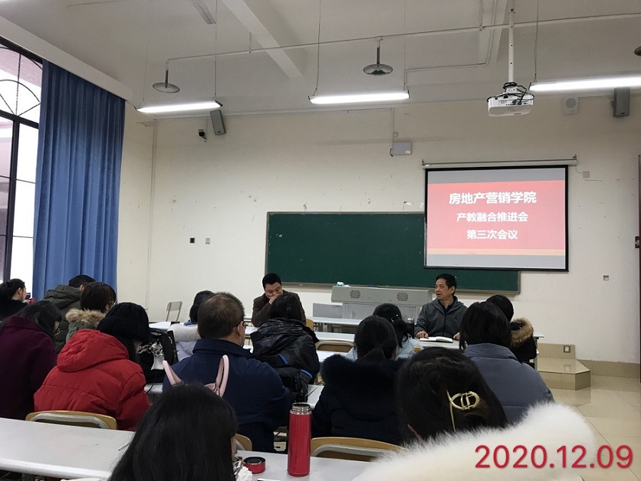 2020年12月9日,房地产营销学院举行了产教融合推进会第三次会议,营销学院全体人员参加了此次会议。