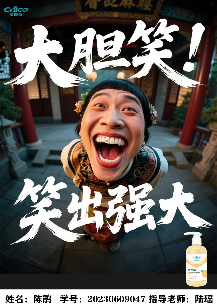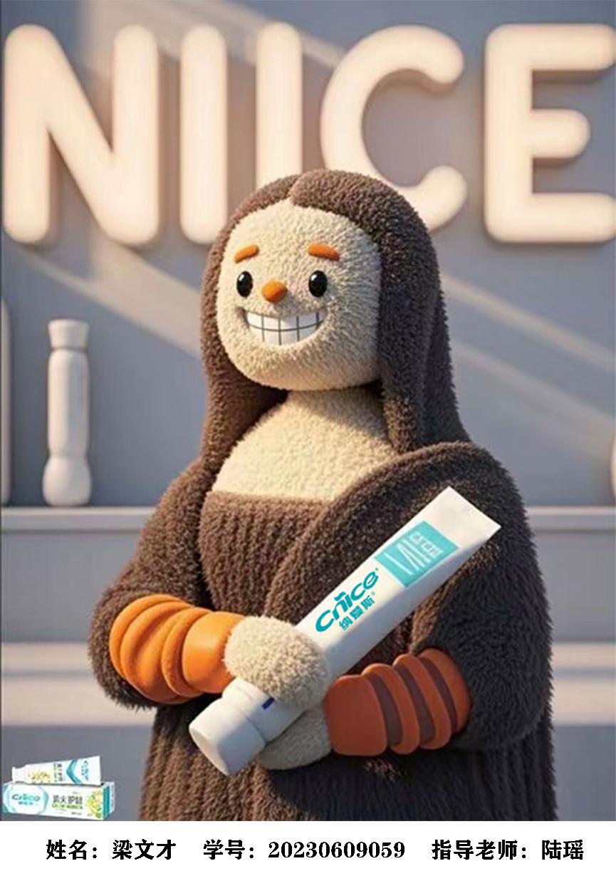 学生作品呈现出丰富的设计风格与创意表达。创作者们分享了学习心得:“之前总觉得设计需要天赋,但AI工具让我发现,只要敢想敢试,每个人都能创造出专业级的作品。”也有学生表示:“通过学习AI绘画,我不再被‘不会画画’束缚,现在能将自己的商业策划用视觉化方式呈现,这对我们专业的营销方案制作帮助极大。”另一位学生坦言:“课程最让我惊喜的是,AI不仅提供技术辅助,更教会我们用设计思维解决问题,这让我对未来的职业发展更有信心。”教师陆瑶评价,学生们通过课程不仅掌握了工具,更形成了“技术+创意”的双向思维模式,作品质量远超预期。