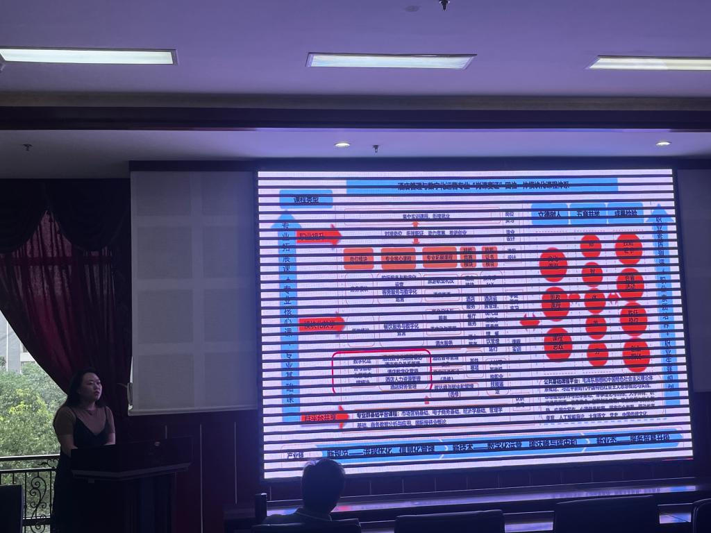 孙婉颖老师结合岗课赛证,以《酒店数字化营销》为题,从教、练、做、赛、创、整六个方面展开职业教育的新思考,将翻转课堂提升到社会实践能力从而加强学生的职业能力;