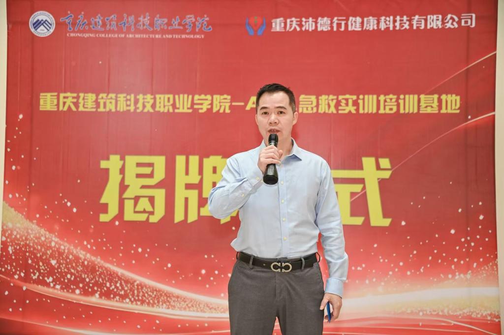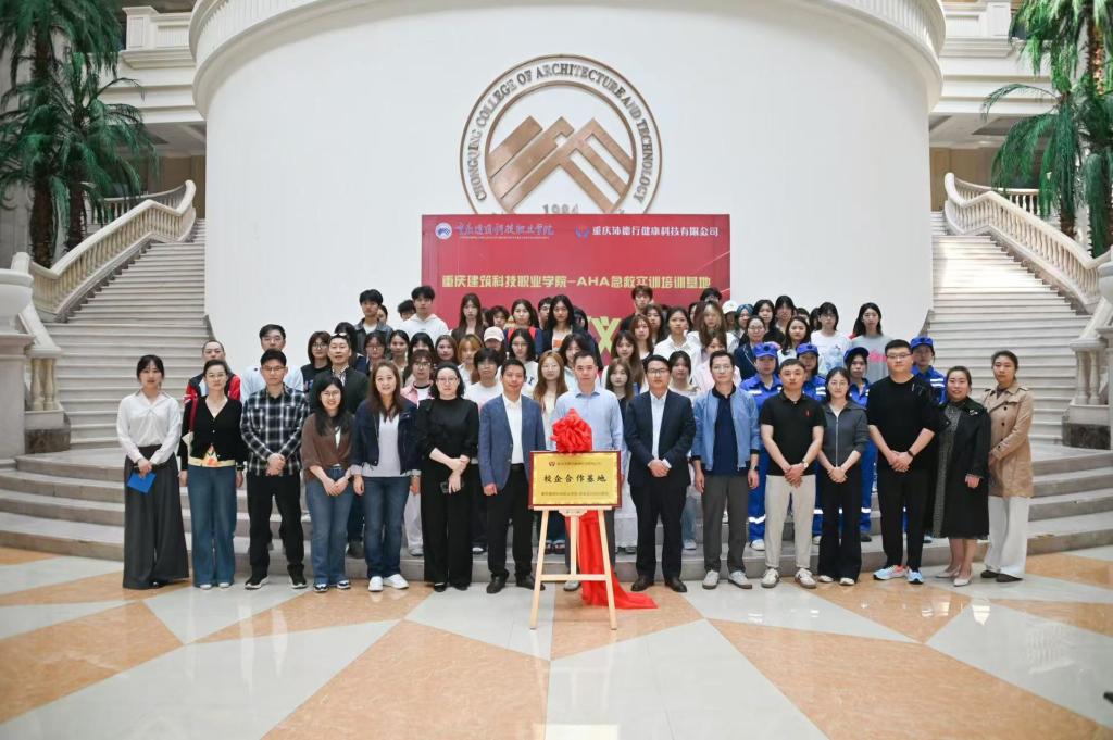 为深入贯彻落实《“健康中国2030”规划纲要》,提升校园应急救护能力,4月10日上午,学校与重庆沛德行健康科技有限公司联合共建的“AHA培训中心急救实训培训基地”揭牌仪式在智慧馆实训大楼举行。继续教育学院彭汝伦院长、智慧康养学院周福亮院长、殷源书记、刘轶副院长,企业总经理莫大瑞及导师团队,师生代表共100余人参加活动。