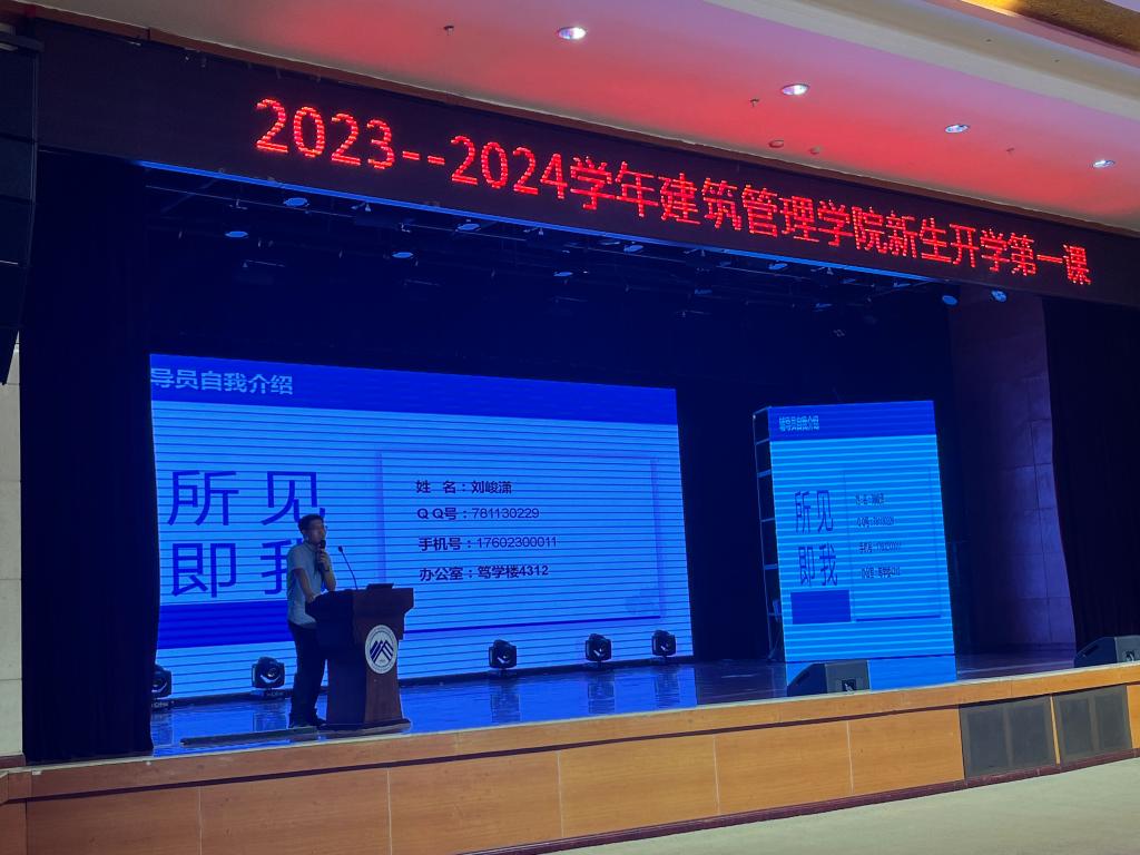 2023911日,建筑管理学院2023级全体新生在学术报告厅开展了“新生入学教育”。俗话说的好“良好的开端是成功的一半”,为了帮助2023级新生扣好人生第一粒扣子,大学生活不再迷茫,不走歪路,我院开展了题为“走好人生第一步”的新生入学教育报告会,由党总支书记殷源同志为新生带来了一场印象深刻的报告。