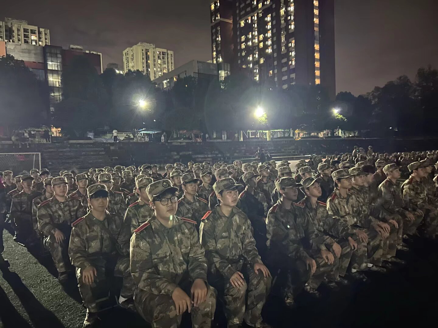 20251012日清晨730分,智慧康养学院2025级新生身着迷彩,在训练场迎来军训开训仪式。总教官以“纪律铸魂,成长赋能”为主题的动员讲话,为广大学子的军训征程注入精神动力。