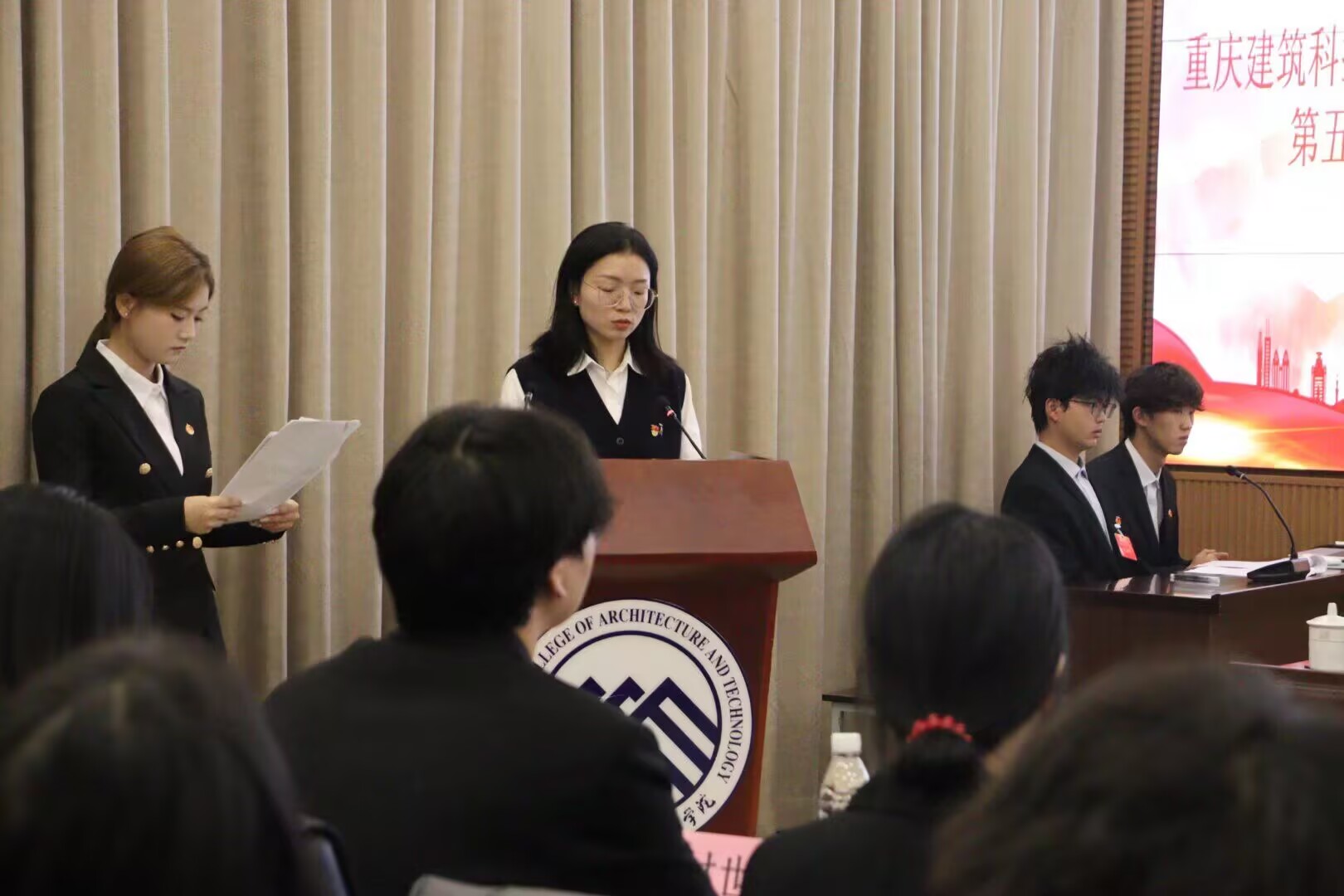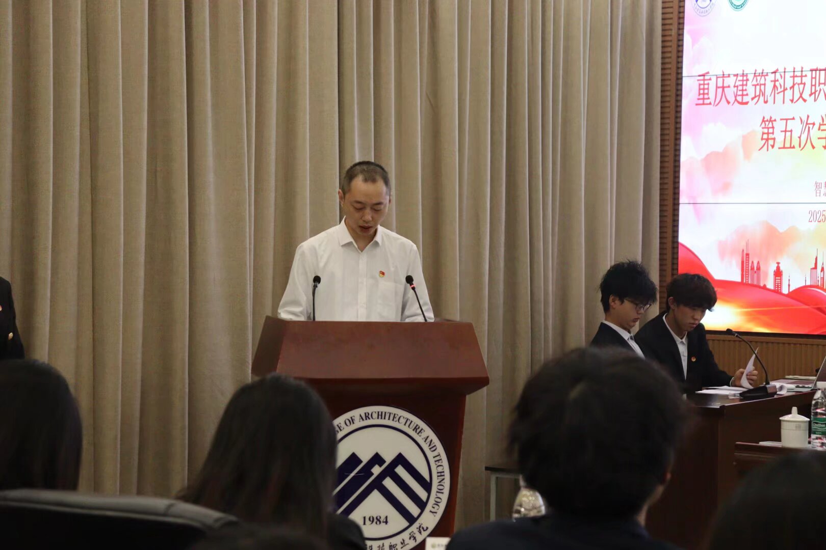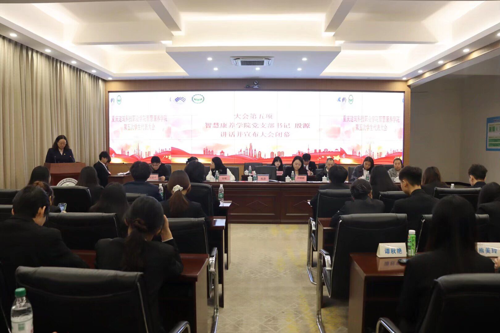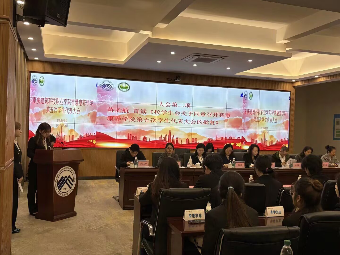 为了维护学生的合法权益和民主权利,不断提高学生的思想道德素质和科学文化素质,2025年10月29日智慧康养学院在立德楼大数据中心召开了第五次学生代表大会,在党总支书记殷源的亲切关怀与团总支书记邹代旖的悉心指导,第五次学生代表大会顺利召开。