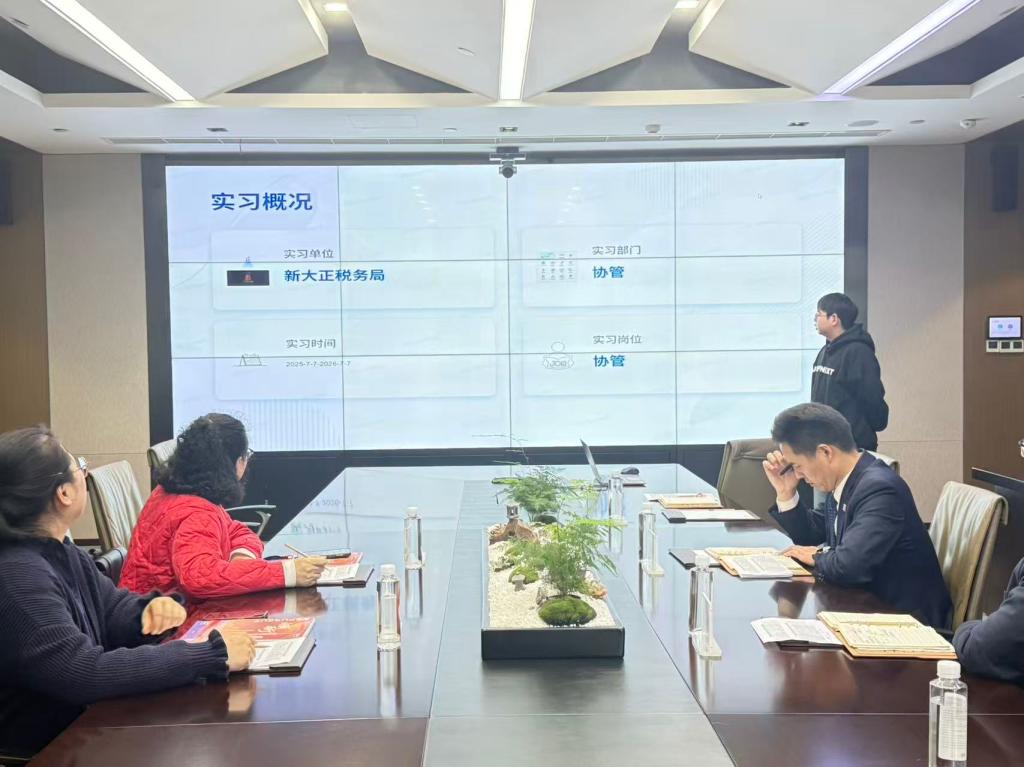 新大正物业廉双红先生致欢迎辞,介绍了公司发展历程、企业文化及在现代物业管理领域取得的成绩。人事总监雷星对学生的实习表现给予肯定,认为同学们展现了良好的专业素养和敬业精神,认真负责、积极参与工作。招聘主管宋秋女士详细讲解了公司的人才培养计划与职业发展路径,鼓励同学们毕业后加入新大正,公司将提供广阔的发展平台。