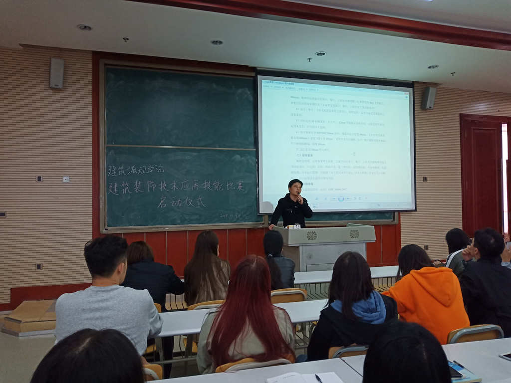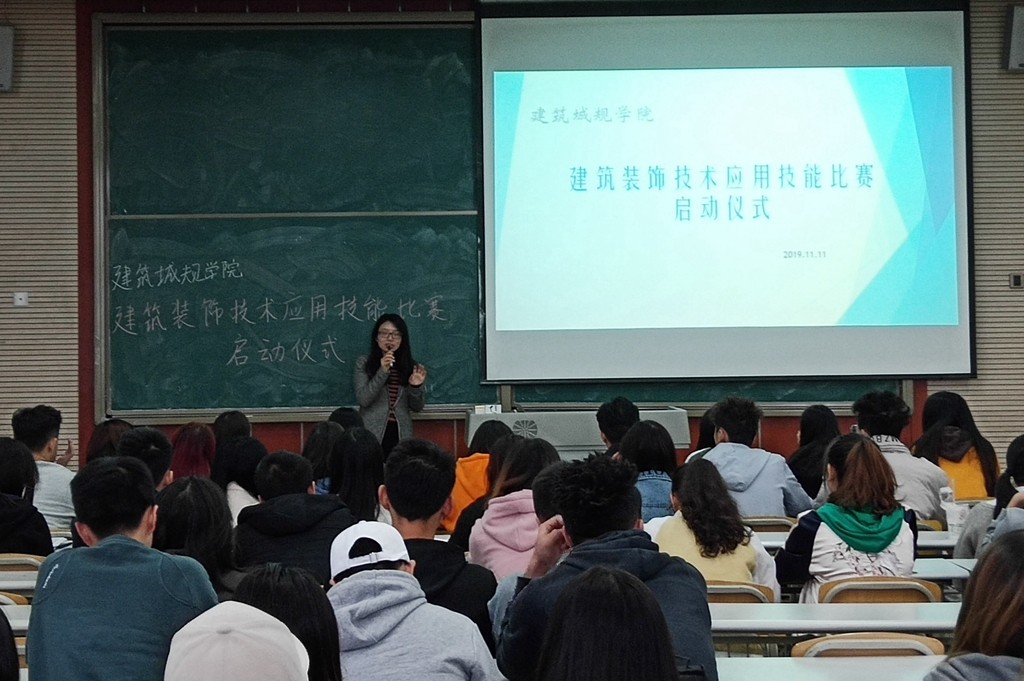 为备战“巴渝工匠”杯重庆市高职院校学生技能竞赛“建筑装饰技术应用”赛项。11月11日,重庆房地产职业学院建筑装饰技术应用技能比赛启动仪式在笃学楼1405召开,本次校内比赛由建筑城规学院承办。建筑城规学院党支部副书记崔艳清,建筑室内设计与表现教研室主任杜异卉,指导老师沈渡文,夏洪波,方芳,尹子祥出席启动仪式。本次会议由建筑室内设计与表现教研室王彦苏老师主持。