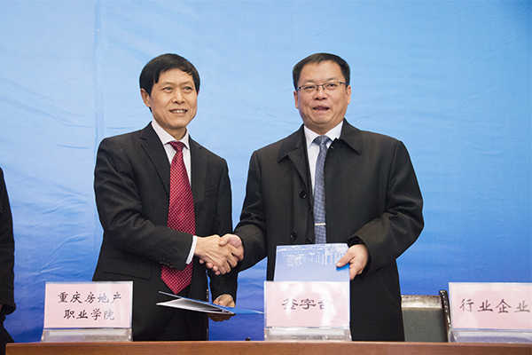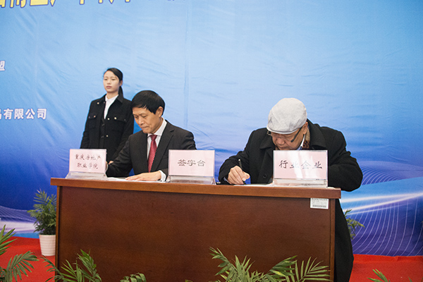 新鸥鹏企业集团副总裁杜积西致辞。他表示,冬至刚过,市教委、市科委、沙区政府以及行业协会就送来及时的“电供暖”温暖,在此代表新鸥鹏集团、房院近万名师生员工对各位领导的到来表示热烈欢迎和衷心感谢。他说,“大众创业、万众创新”是国家的号召,是时代的要求,是广大学子的机遇,而依靠创新理念引领的展销中心落户房院,将会对整个房地产行业带来温暖。他相信,在多方共同努力下,项目的签订将对正处于冬季的整个房地产行业带来新的温暖和希望。