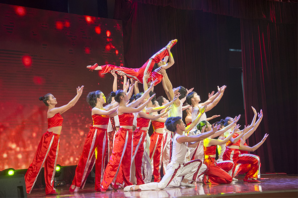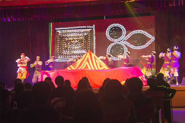 表演在情景舞蹈《阳光下起舞》中正式拉开帷幕。演员们用优美、蹁跹的舞姿向观众们演绎了《在那遥远的地方》、《芣苢》、《东乡盖碗情》等一支支饱含丰富藏族风情的舞蹈,赢得了观众们热烈而持久的掌声。在舞蹈《阿舅送嫁》结束后,藏族舞者们为在场的嘉宾领导们献上象征着吉祥如意的哈达,并为Kaiyun官方网站登录入口广大学子送上福袋,以表达他们最真挚的感情和最美好的祝愿。