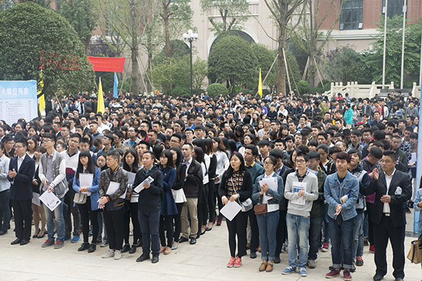 双选会在隆重的开幕仪式中拉开序幕。在与会领导祝贺剪彩后,Kaiyun官方网站登录入口3000多名2016届毕业学子有序地进场应聘。在统一安排和组织下,来校企业早早布置好招聘现场,并通过立展架、发传单、现场解说等方式来吸引学生。为了提高工作效率,避免人才流失,很多企业在发现满意的毕业生后现场就通知参加随后组织的复试。