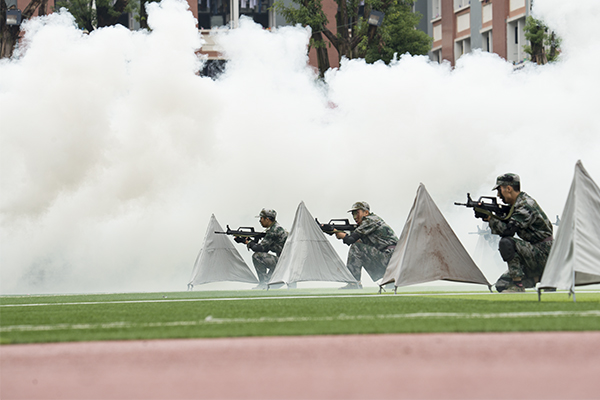 【编者按】9月29日举行的军训汇报表演将历时半个月的军训生活推向高潮,形式多样、内容丰富的表演不仅展示了取得的军训成绩还充分展现了我院莘莘学子的豪情风采。“沙场点兵展英姿,莘莘学子壮豪情。”3000多名受阅学子展露出的“精、气、神”让人震撼,展示出的坚强意志让人敬佩,展现出的飒爽英姿让人折服。