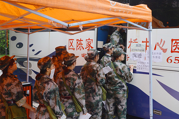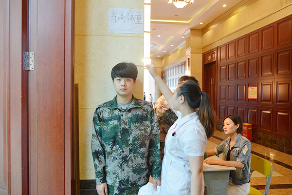 体检在2015级新生军训教官的组织和指引下进行,整个体检过程井然有序。同学们依次排队进行各个项目的体检,文明有礼,纪律严明,给前来体检的医生留下了很好的印象。