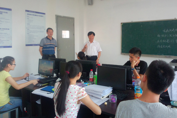 7月18日,学院党委副书记陈锦连和学院副院长何培斌来到教学楼C506,亲切看望即将出行的第八届“高教杯”全国大学生先进制图大赛11名参赛选手,为他们加油壮行。