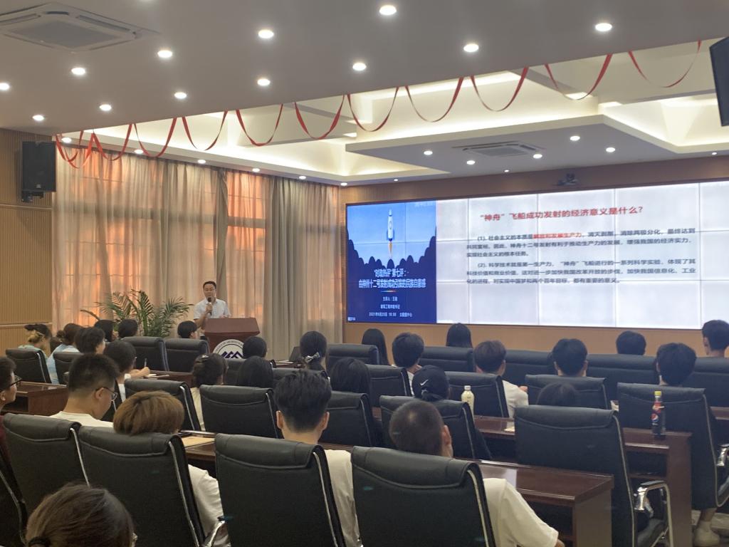本次讲座,王尧书记从神舟十二号发射的意义、民族自豪感、发扬中国载人航天精神三个维度来讲述神舟十二号发射成功给国家、人民带来的影响和启发。此次神舟十二号发射成功发扬了以爱国主义为核心的民族精神;鼓舞了全国各条战线的爱国热情和工作精神;表明了我国国防实力的提升。航天精神同脱贫攻坚精神、疫情防控精神等汇聚起中华民族精神体系,成为朝着为人民谋幸福、为民族谋复兴初心使命的价值导向、思根指引和动力源泉,必然能够激起青年建功立业、接续奋斗、矢志不渝的精神底气。