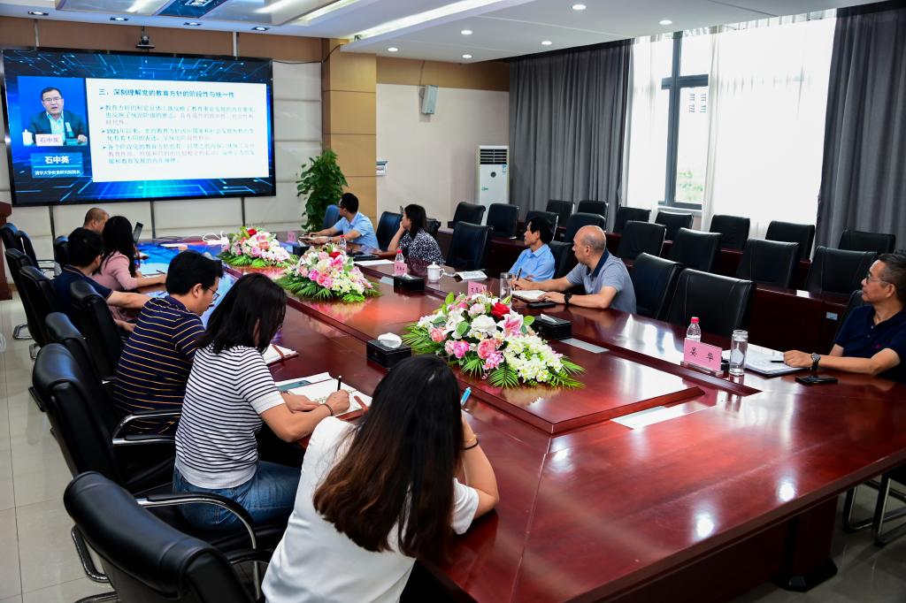 9月27日,由教育部发展规划司主办的贯彻《中华人民共和国民办教育促进法实施条例》专题培训在线上举行。学校校长朱新才、党委书记文厚润及其他校领导和中层干部在立德楼六楼会议室参加培训。