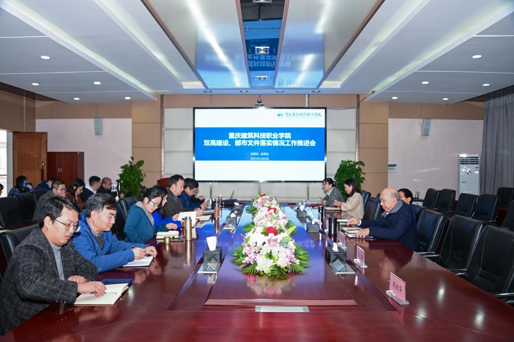 会议首先由双高11个板块负责人汇报了双高建设11月完成情况、进度以及存在的困难;各二级学院及部门结合学校承接教育部和重庆市高质量发展职业教育事项清单,汇报了本单位能够承接的事项及完成基础。