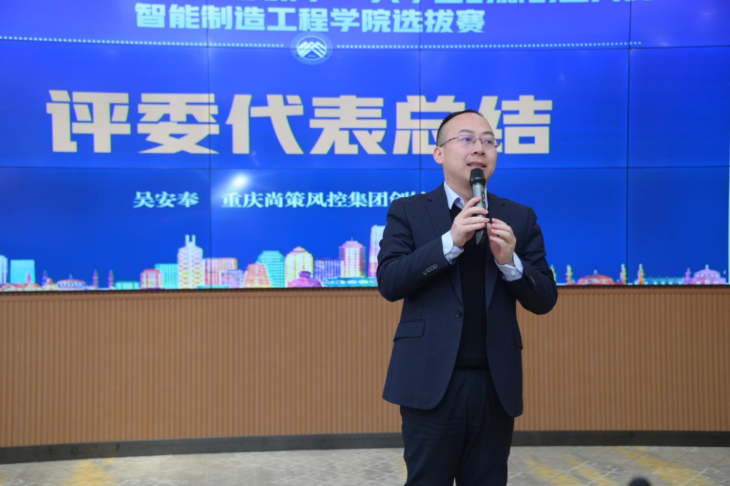 路演答辩环节中,来自智能制造工程学院的12个学生项目团队通过三分钟路演+三分钟答辩,最终评出了一等奖二等奖三等奖各一名,分别是旋翼无人机专用无线氮化镓快速充电器、新式低成本无人智能水质监测平台、“星球还净”垃圾智能分类多功能环卫车。评委们以学生演讲能力、团队分工情况、项目商业价值、项目市场需求等方面提出了指导建议。同时吴安奉总经理指出,项目商业可行性、经营绩效、增长潜力和现金流情况应重点完善。