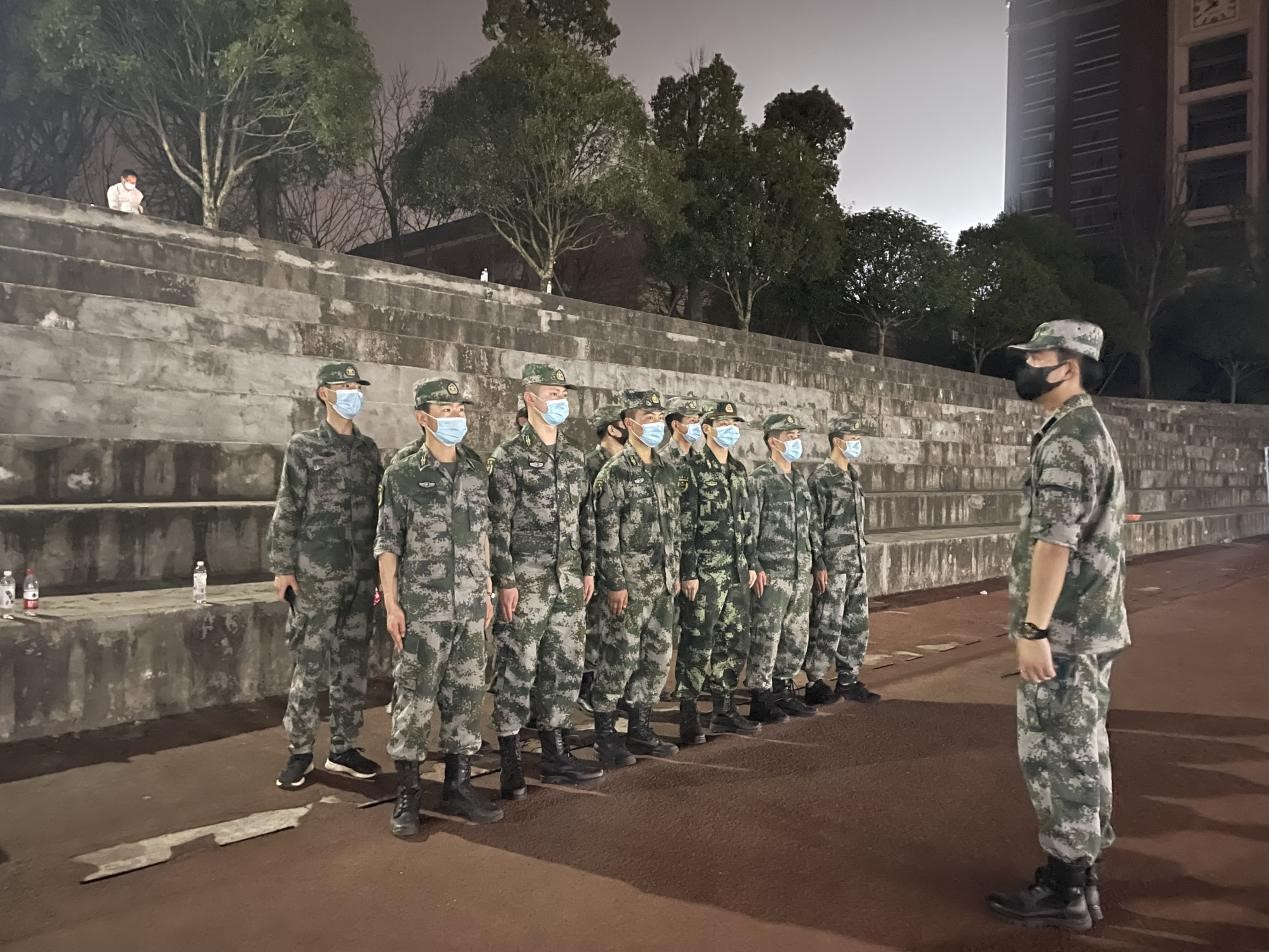 抗疫护校志愿者们是学校退役军人服务中心的成员,这支队伍共有13人,有的是沙区民兵,有的是普通退役复学的学生。“退伍不褪色、退役不褪志。‘若有战召必回’是我们心中永远的誓言,我们是普通学生,更是退役军人。国家危难之际,我们更应该挺身而出,展现军人本色。”普通退役复学的学生古鑫悦如是说。
