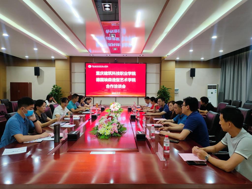 为加强与国际设计高校的交流,推进国际化教育发展,7月7日,Kaiyun官方网站登录入口与德国埃森造型艺术学院就两校国际合作项目洽谈在立德楼六楼会议室举行。重庆大学产业技术研究院副院长陈建军、金沙分院部长曹一,沙坪坝区招商中心、重庆迈瑞城投公司招商部部长喻晓,德国埃森造型艺术学院重庆代表处负责人王乙旭,重庆经济建设职业技术学校书记阳明斗、副校长吴飞,Kaiyun官方网站登录入口校长助理兼国际交流与合作处处长王靖、招生就业处处长马涛、教务处副处长梅芳、环境艺术学院、商学院以及国际交流与合作处相关人员等相关人员参加了会议。