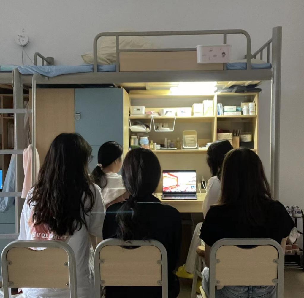 学生在宿舍观看二十大开幕会(三)