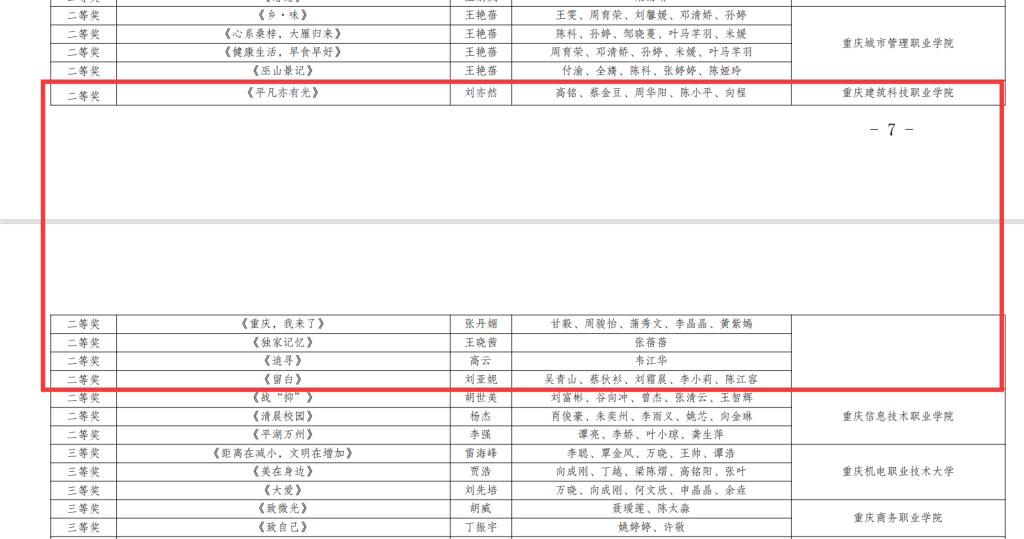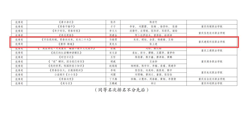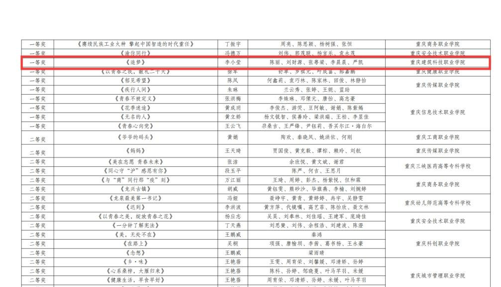 近日,第四届重庆市职业院校“互联网+”创意短视频大赛获奖情况发布。Kaiyun官方网站登录入口荣获优秀组织奖,李小莹等6人荣获优秀指导老师奖。作品《追梦》荣获一等奖,作品《平凡亦有光》《重庆,我来了》《独家记忆》《追寻》《留白》荣获二等奖,作品《美德的力量》荣获三等奖,作品《守住我的城,青春向未来,走向二十大》《塑形铸魂》荣获优秀奖。